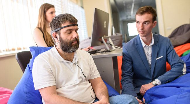 «С помощью этой технологии можно научиться контролировать свое сознание, — отметил Сергей Васильцов. — В зависимости от вида деятельности работа нашего мозга вызывает электрические колебания на разных частотах. Волны мозговой активности считываются нейроинтерфейсом и передают звуковой сигнал (уровень громкости). Таким образом, человек учится бороться со стрессом, может без нейрогарнитуры в любой момент войти в состояние осознанного самоконтроля и спокойно реагировать на негатив. В дальнейшем планируем подключить визуальный ряд и использовать VR-очки для обучающих сеансов».