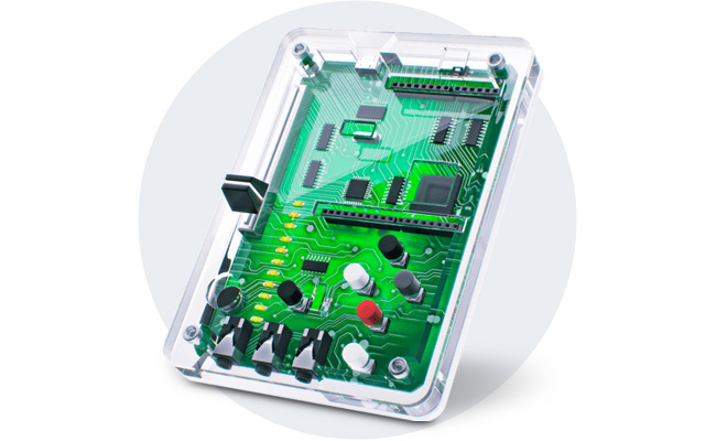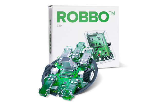 «РОББО Лаборатория» объединила в себе два старых устройства – «РОББО Лабораторию» и «Цифровую лабораторию». Это переносная модульная система, которая включает в себя программируемый блок и дает возможность собирать и анализировать данные из окружающей среды с помощью датчиков света и звука. В новой версии добавлены два аналоговых порта и один цифровой для подключения внешних датчиков. Кнопки управления получили новый скругленный дизайн и подписи ко всем элементам управления. «РОББО Лаборатория» теперь подключается к компьютеру через USB или micro USB, на устройство выведены две линейки портов Arduino, с которыми можно работать прямо из программной среды Scratch. Также появилась возможность подключать дополнительные модули (шилды), совместимые с Arduino. Новая версия имеет дополнительные переключатели, поэтому устройство можно использовать в качестве платы Arduino Uno.