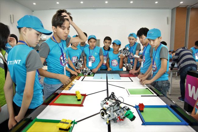 В Конгресс-центре ЭКСПО со 2 по 4 июля проходил национальный чемпионат по робототехнике среди школьников Казахстана. По итогам соревнований были определены победители в трех возрастных группах по категориям – "Основная", "Творческая" и "Футбол роботов". Команды, занявшие первые места по всем категориям, будут приглашены на учебно-тренировочный сбор, по итогам которого определятся дети, которые смогут участвовать во Всемирной олимпиаде роботов WRO 2017 в Коста-Рике.