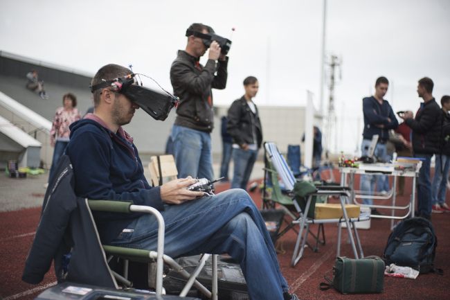 С утра организаторы создавали трассу для гонок, которая состояла из трех ворот и нескольких стоек, которые надо было облететь. В это время участники до открытия соревнований старались обкатать свои миниатюрные беспилотники на трассе. Закрытая высоким сетчатым забором территория стадиона отлично подходила для этих соревнований. Место для зрителей было огорожено, чтобы выполнить требования техники безопасности, ведь скорость беспилотников достигает почти 100 км/час. Тем более что самыми любопытными и вездесущими были мальчишки, которые пришли на соревнования вместе с папами.