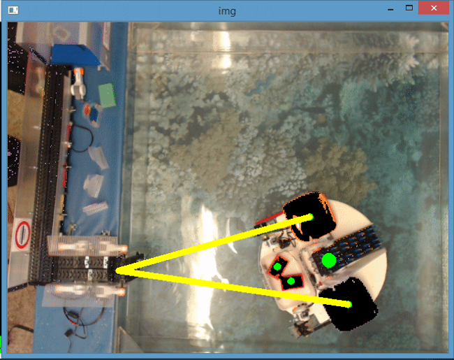 OWC-2016 получает из коммуникационного центра сигнал, что объект поднят с помощью понтонов и должен быть доставлен на базу. OWC-2016 находит по переданным из центра координатам поднятый объект (в нашем случае роль центра выполняет камера, установленная над аквариумом). После того, как захват произведен, объект буксируется для подъема.