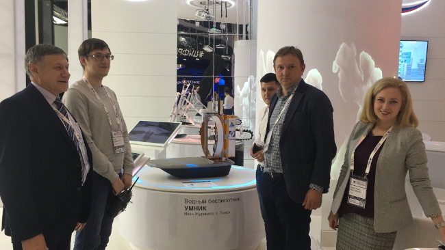 На всероссийском форуме «Открытые инновации» федеральную программу «УМНИК» на стенде Фонда содействия инновациям представлял проект из Томска. Из множества поддержанных программой проектов организаторы стенда выбрали подводный беспилотник от команды ТУСУРа.