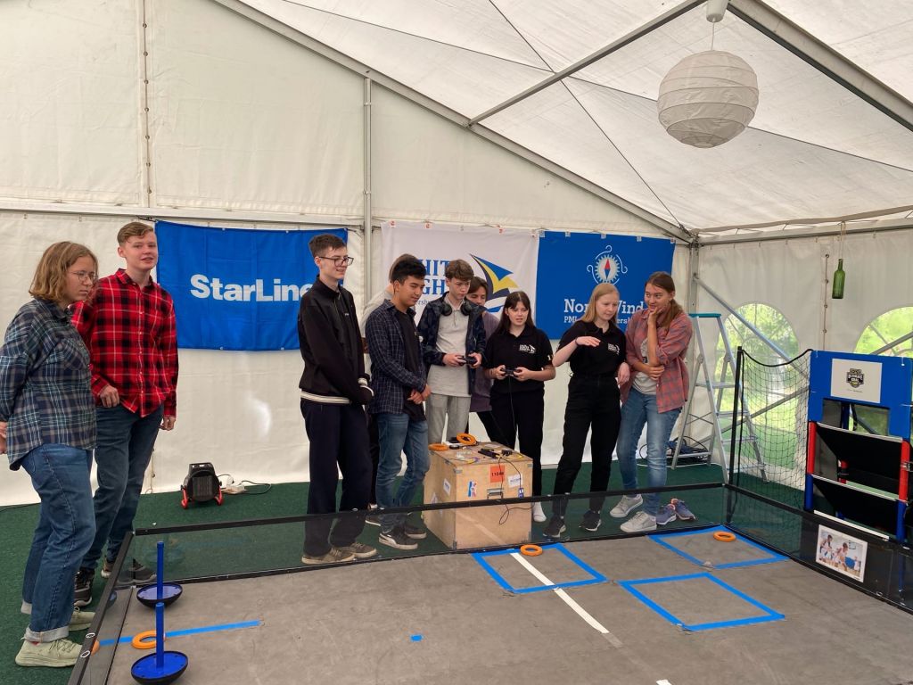 - Сессии для групп школьников с преподавателем с описанием процесса разработки робота, формирования игровой стратегии, продвижения команды и общения с другими участниками. Таких сессий было проведено 5 штук, в каждой из которых участвовало по две группы из школ и лицеев Южно-Сахалинска. В конце желающие могли попробовать самостоятельно выполнить задание на игровом поле, управляя роботом с помощью геймпадов.