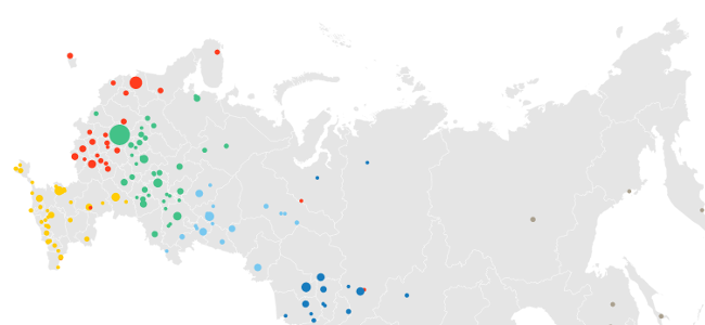 Почти во всех городах самыми популярными оказались местные вузы. В некоторых случаях — например, в Москве, Казани, Томске или Новосибирске — они занимают большую часть топ-10. Лидерами по суммарному поисковому интересу иногородних пользователей вполне предсказуемо стали Москва и Санкт-Петербург. В целом по стране также популярны вузы Новосибирска, Казани, Екатеринбурга и Ростова-на-Дону — на них приходится по 3% от всех запросов. Посмотреть интерактивную карту связей между городами можно в полной версии исследования.
