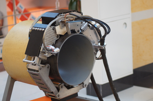 «Всего мы сделали четыре прототипа, перепробовав несколько типов конструкции. Нужно было вписаться в габаритные размеры, подобрать оптимальный вес. Применяли разные материалы - дерево, пластик, алюминий, не раз кардинально меняли узлы изделия. Удачный экземпляр удалось собрать только год назад. Сейчас робот-сварщик находится на финальной стадии испытания, и, надеемся, уже не потребует каких-либо переделок. Работу по подбору сварочных режимов курирует доцент кафедры машиностроительных технологий и материалов Андрей Балановский. Робот состоит из каретки, сварочного аппарата, системы управления и пульта. Принципиальное отличие нашего предложения от аналогов на рынке – это компактность. Радиальные размеры робота позволяют выполнять сварку в каналах, что актуально при монтаже труб. Когда трубы укладывают в каналы, то человек с большим трудом может проводить там работы – иногда зазор от стенки канала до трубы всего 180-200мм. Наш робот цепляется на трубу, замыкается вокруг нее и совершает орбитальные движения. Сварочная горелка может выполнять колебательные движения, подниматься вверх-вниз относительно трубы, изменять угол наклона горелки относительно поверхности (плюс-минус 45 градусов)», - рассказал Роман Кононенко.