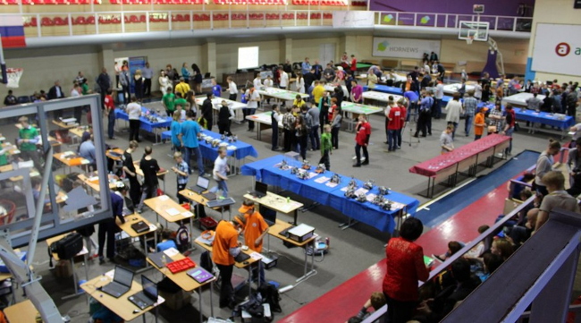 На фото региональный этап робототехнических соревнований по нескольким категориям крупного субъекта РФ, участников можно «по пальцам» пересчитать. А где зрители и болельщики?