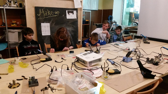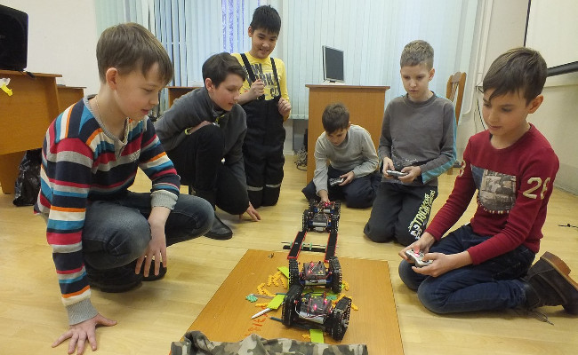Мы применяем на 80% готовые наборы, 20% изготавливаем сами какие-то части, элементы, собираем что-либо. Такое соотношение получается из-за того, что основная аудитория, которая ходит сегодня к нам, это дети 6-9 лет, для которых важно получение конечного интересного результата к концу каждого занятия (таким образом подогревается интерес к данному направлению). Далее уже заинтересованные и подкованные на начальном уровне дети сами желают докопаться до сути, сделать что-то индивидуальное, воплотить свои идеи — тогда конструктор уходит чуток в сторону и используется лишь для тестов экспериментов.
