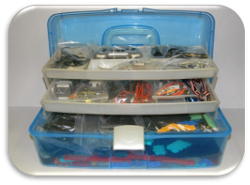 набор различных датчиков - 6 видов датчиков: 3 инфракрасных, 1 ПДУ, 1 датчик освещенности, 2 датчика касания, 1 пьезоизлучатель, 1 датчик звука;