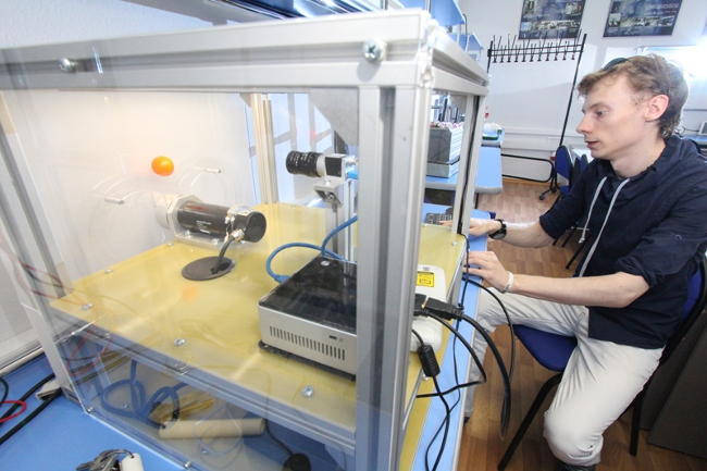 «Задача не тривиальная, для ее решения необходимы знания минимум магистерского уровня. Здесь применяется алгоритм адаптивного управления: робот отслеживает траекторию шарика и мгновенно реагирует, совершая необходимое действие.Обучившись этому на лабораторном комплексе, такие же команды специалист сможет применять в любых других системах», — рассказывает лаборант кафедры интегрированных компьютерных систем управления Александр Зарницын.