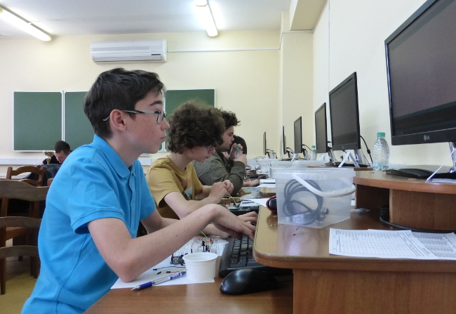 В этом году ребятам было предложено за 3,5 часа решить всего одну задачу. Однако уровень сложности её был достаточно высок. Требовалось собрать схему, имитирующую лабораторную установку, которая должна была выполнять различные команды, приходящие с СОМ-порта. В результате упорной борьбы с заданиями успешно справились те, кто смог более правильно составить и реализовать граф состояний разрабатываемой системы.