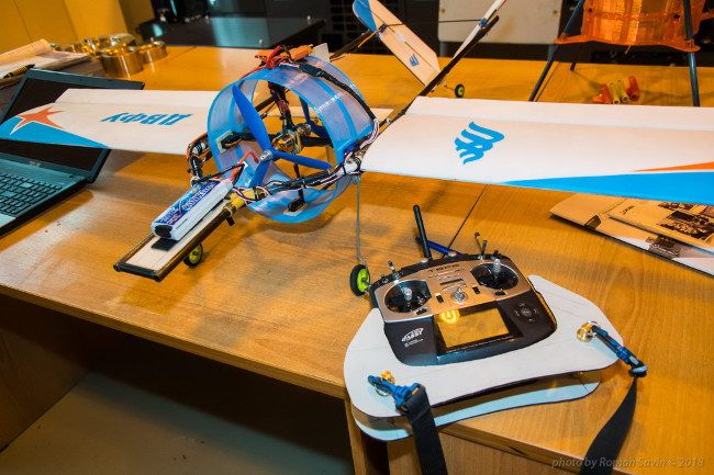 «Мы создаем универсальную летающую платформу, которая будет сочетать в себе возможности квадрокоптера и самолета: в одном режиме аппарат должен иметь возможность совершать вертикальный взлет и посадку, «зависать» над исследуемым объектом, а в другом — двигаться горизонтально, как самолет. При этом он сможет выполнять продолжительные полеты с минимальными затратами энергии», — рассказал третьекурсник Радомир Подленный.