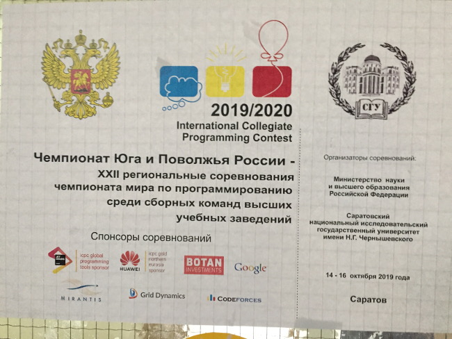 По итогам прошедшего четвертьфинала студенческого Чемпионата Мира ICPC (с этого года – Чемпионата Юга и Поволжья России) команда ННГУ в составе Николая Калинина (ВШОПФ), Алексея Данилюка и Валерии Рябчиковой (ИИТММ) одержала убедительную победу, решив все 14 заданий из 14 возможных (команда, занявшая 2 место, решила 11 задач).