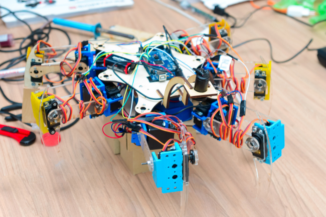 Студенты ИИТК Роберт Лапко, Михаил Бабьяк и Сарваржон Юсупов на базе студенческого конструкторского бюро «Когнитивная робототехника» сделали прототип робота для исследования возможности преодоления «пауком» разных типов препятствий, а также для анализа эффективности алгоритмов интеллектуального анализа данных при решении задачи управления им. Проект называется «Эффективное управление киберфизическими системами с помощью нечетких логических систем».