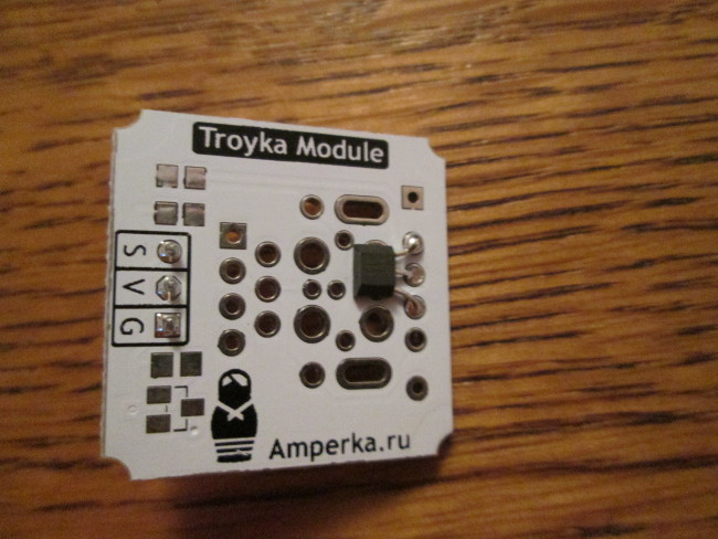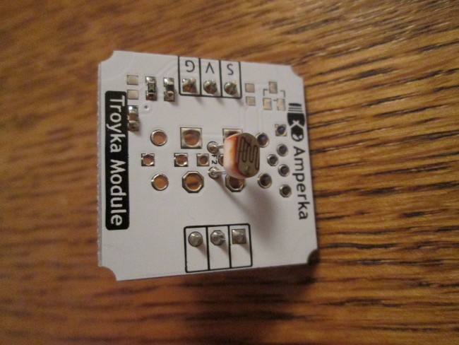 Затем помещён датчик освещённости. С ним несложно работать, я даже упоминал его в статьях и показывал проекты с его участием.