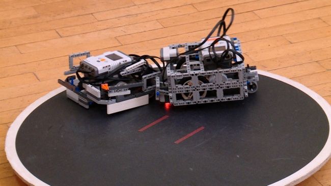 Каждый участник соревнования пришел с миниатюрным роботом, которого собрал за короткий срок без помощи наставника. Игра идет на выбывание конкурсантов. Победу одержит тот, чьё устройство окажется мощнее и сильнее.