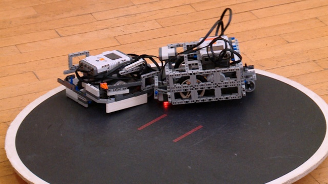 Состязание аналогично борьбе сумо. Цель - вытолкнуть соперника за пределы арены. В случае если никто не выбыл за поле, судья смотрит, кто из роботов оказался ближе к центру. Устройство у каждого участника индивидуально и с изюминкой. Развитие творческого начала в научной деятельности для организатора соревнований, регионального школьного технопарка, в приоритете.