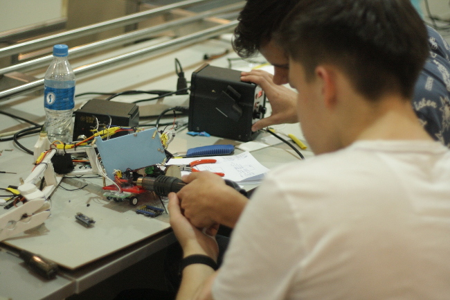 Именно они всего за 24 часа «с нуля» собирали роботов и запрограммировали их на прохождение полосы препятствий.