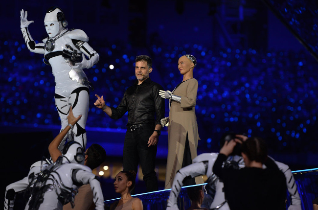 «Как вы считаете, ручной труд в мире информации, виртуальности, роботов и новых поражающих воображение открытий сохранится или исчезнет?», - такой вопрос задал зрителям создатель Софии, американский робототехник Дэвид Хэнсон. Зрители церемонии ответили спикеру с помощью пультов для голосования.