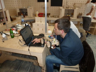В отличие от первых двух чисто программных хакатонов, третий хакатон, был посвящен «железу» - это был двухдневный марафон молодых спецов, задачей которых было за 30 часов собрать из набора инструментов и деталей робота-машину, подключить электронику и написать программные алгоритмы для автономного прохождения трассы. Все участники третьего хакатона были изначально поставлены в равные условия, и команду-победителя определял тот робот, который безошибочно и быстро пройдет трассу.