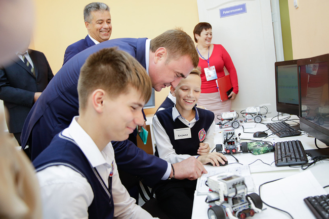 Алексею Дюмину показали кабинет робототехники, телефотостудию, комнату веб-дизайна.