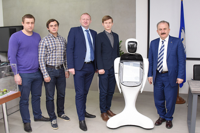 Ректор ДГТУ Бесарион Месхи и директор Ростовского-на-Дону зоопарка Александр Жадобин подписали договор о поставке в зоопарк информационного сервисного робота-кассира Waybot, разработанного выпускниками и студентами опорного вуза.