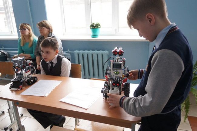 Соревнования по робототехнике включали в себя несколько категорий. В творческая категория — «Экороботы» (экологическая тематика) соревновались ученики младших классов.
