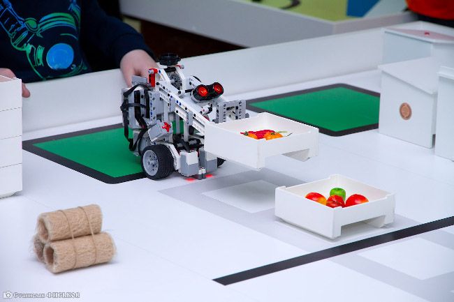 Для каждой из трех категорий участников были разработаны разные задания. Например, в категории «Начинающий» робот должен был пройти траекторию по определенной линии, не уронив при этом перевозимый объект. Роботу «Любителя» предстояло испечь торт, предварительно собрав по складам определенные ингредиенты. А перед «Мастером» стояли самые сложные задачи: например, принять и расшифровать сообщение, пересланное азбукой Морзе.