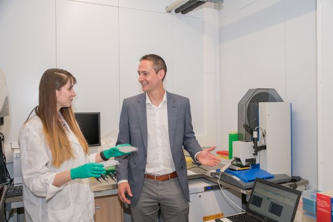 В лаборатории Сколтеха робот Mosquito выполняет одну из наиболее трудоемких операций в рутинной подготовке проб — по заданному алгоритму распределяет образец и нужные реактивы по лункам. При этом машина может быстро и точно дозировать и перемешивать нанообъемы жидкостей разной вязкости вплоть до 25 нанолитров, исключив при этом возможность контаминации (загрязнения). Планшет из 96 лунок робот заполняет нанообъемами за считанные минуты.