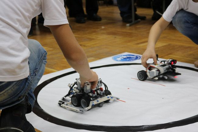 В номинации «Робо-сумо» от ребят требовалось подготовить полностью автономного робота, который будет выталкивать своего противника за пределы ринга. Это был, возможно, самый зрелищный из конкурсов. Победителем стала команда «Белком» детского технопарка «BelRobot» из Белгорода (Марк Литвин, Александр Процких).