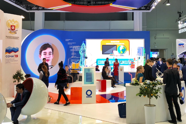 Кроме того, на стенде Минпросвещения гости форума могут лично принять участие в реализации национального проекта и «инвестировать» в него свой творческий, научный и гражданский потенциал. На площадке стенда нацпроект «Образование» представлена интерактивная доска, на которой участникам форума предлагают оставить заявку на проведение лекций, мастер-классов или тренингов для детей, родителей и педагогов, а также стать наставниками для школьников. Представители производственных предприятий в качестве своей «инвестиции» могут предоставить места на стажировку.
