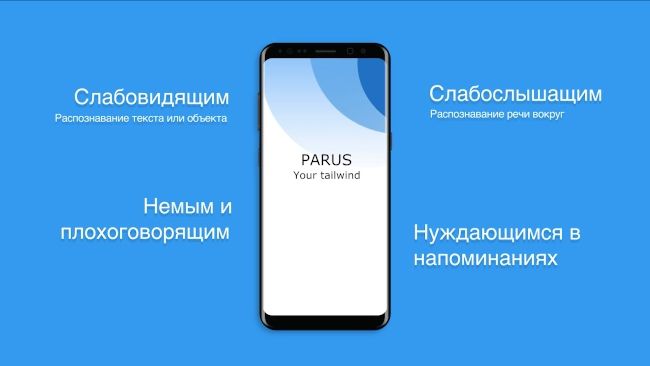 В проекте Parus используются технологии компьютерного зрения и синтеза речи, которые облегчают повседневную коммуникацию людям с ОВЗ. В число доступных функций входят:
