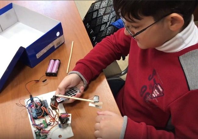 Конструкция робота состоит из двигателя постоянного тока, драйвера, серво-моторов и приёмника для пульта дистанционного управления. Работает робот от аккумуляторов 18650, сообщает Никита.